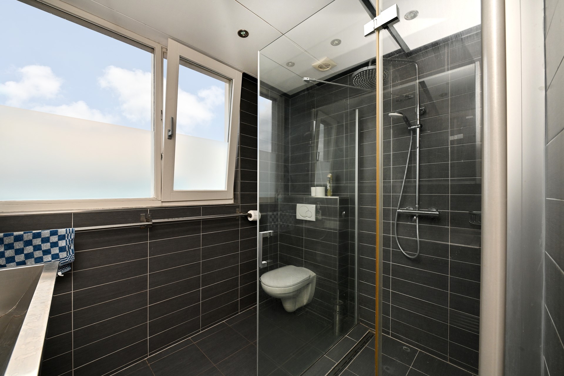 Compacte badkamer met douche en wastafel