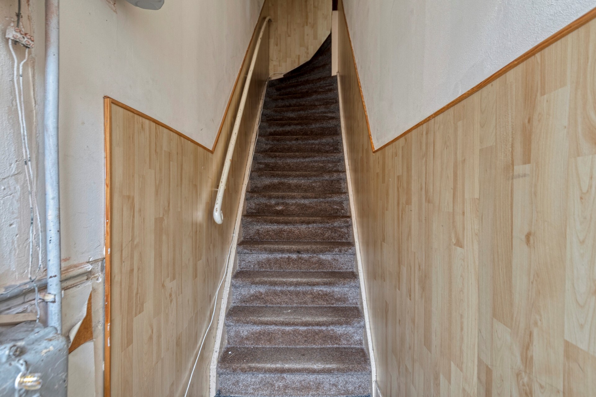 De bovenwoning (staat leeg) bevindt zich op de eerste en tweede verdieping en betreft een ruim appartement met meerdere slaapkamers en een functionele indeling. De woning is afgewerkt met vloerbedekking in de hal en laminaatvloeren op de overige verdiepingen. De wanden en plafonds zijn grotendeels gestuct, wat zorgt voor een verzorgde uitstraling.