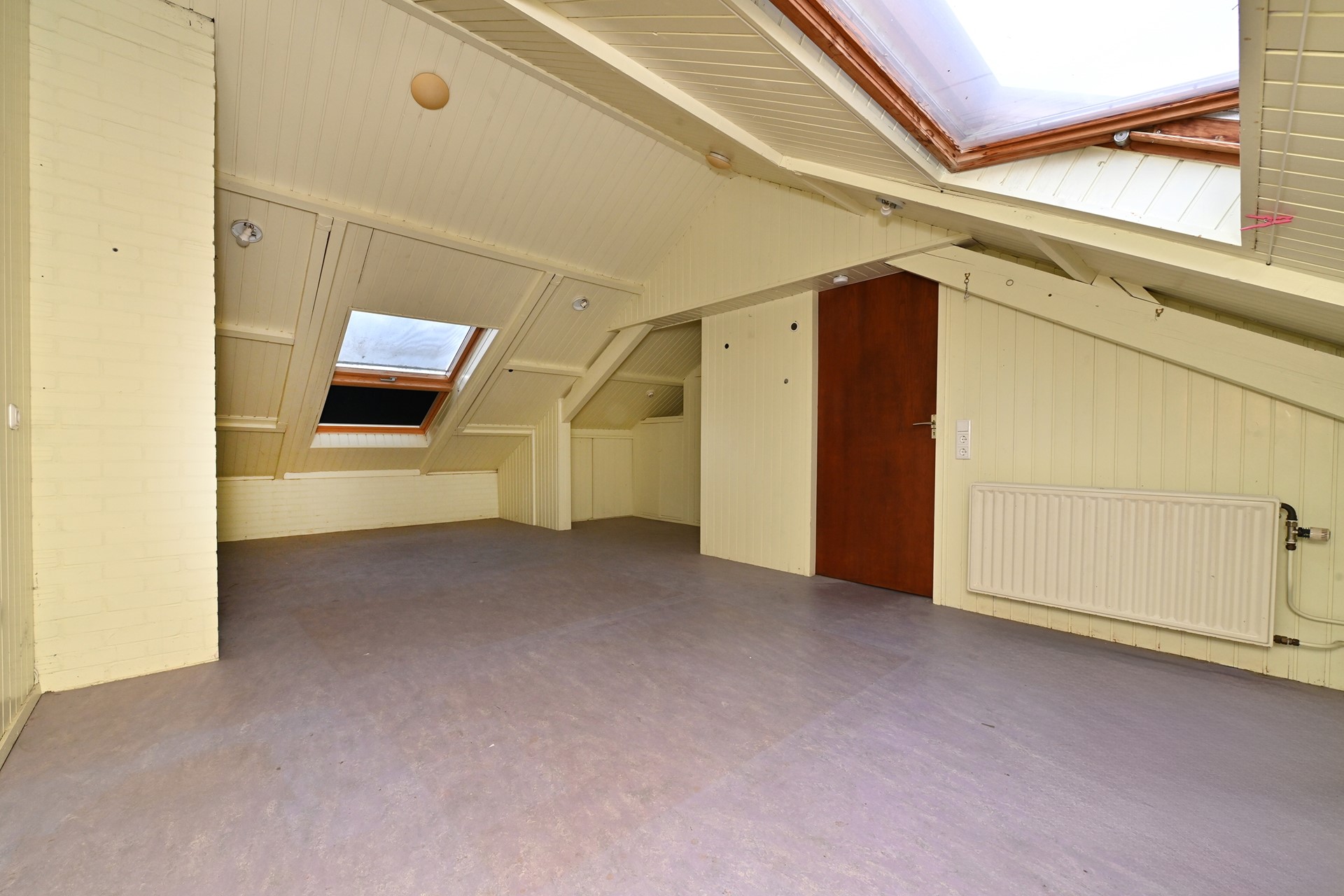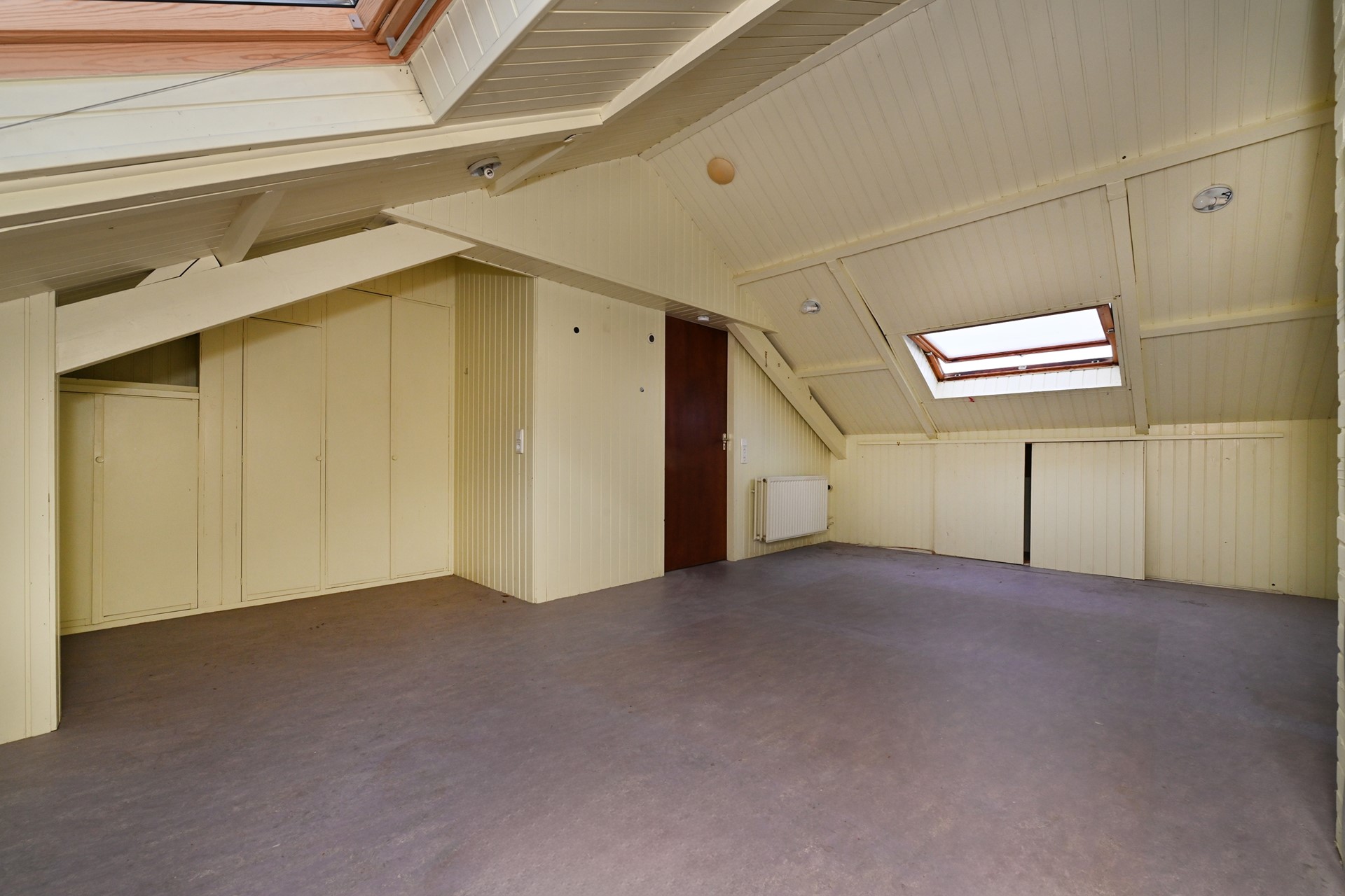 De vierde slaapkamer beschikt over zichtbare houten balken en houten schrootjes op zowel wanden als plafond. Een ideale ruimte als slaapkamer, hobbykamer of werkruimte.