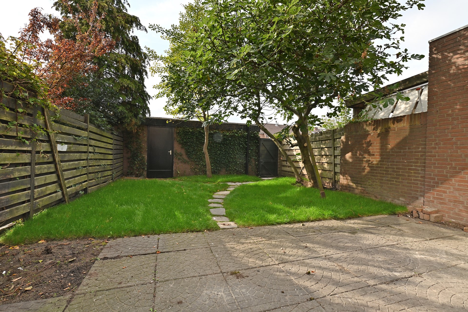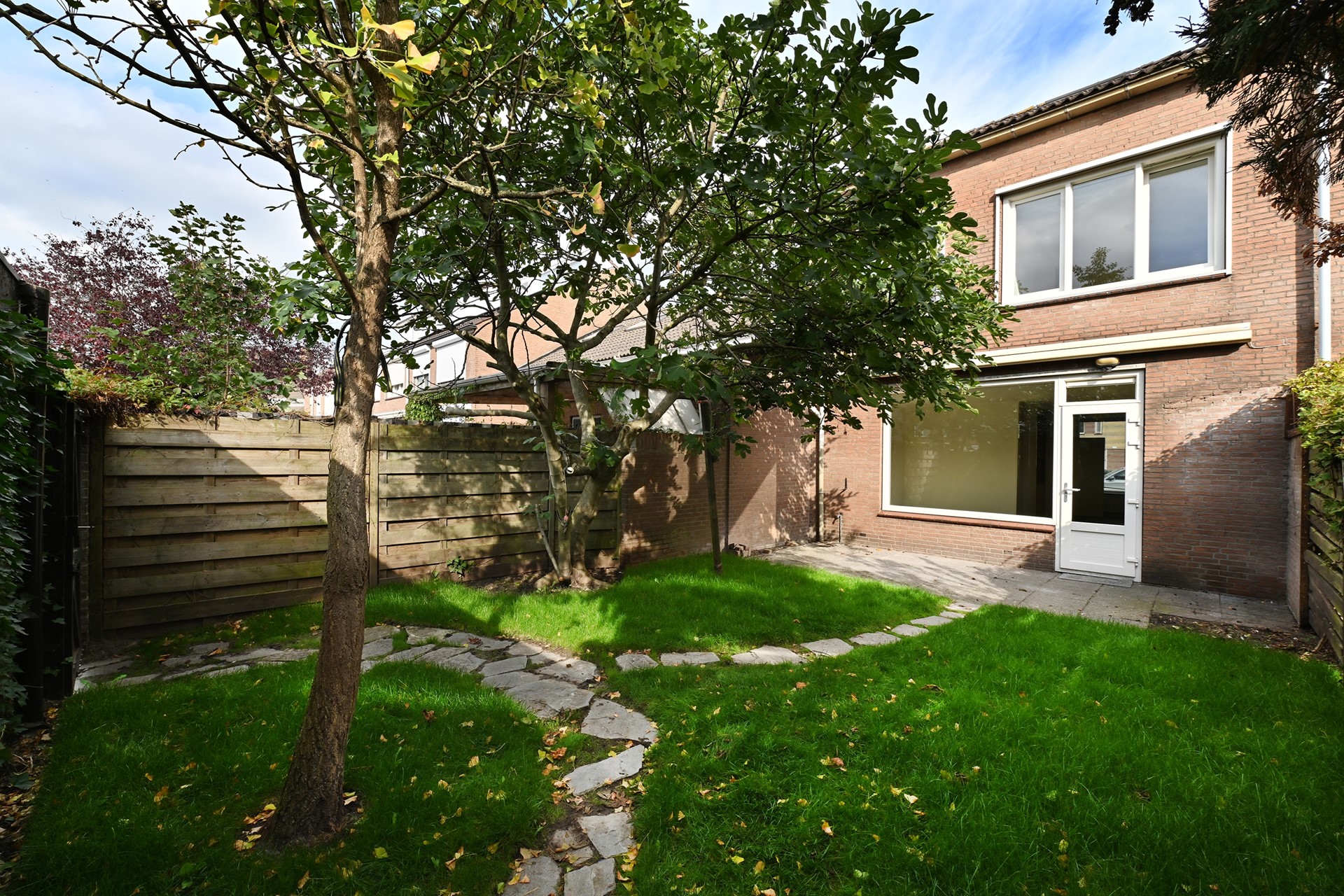De fraai aangelegde achtertuin is gelegen op het westen, waardoor je hier de hele middag en avond van de zon kunt genieten. De tuin is bereikbaar via de woonkamer en beschikt over een praktische achterom én een toegangsdeur naar de stenen garage.