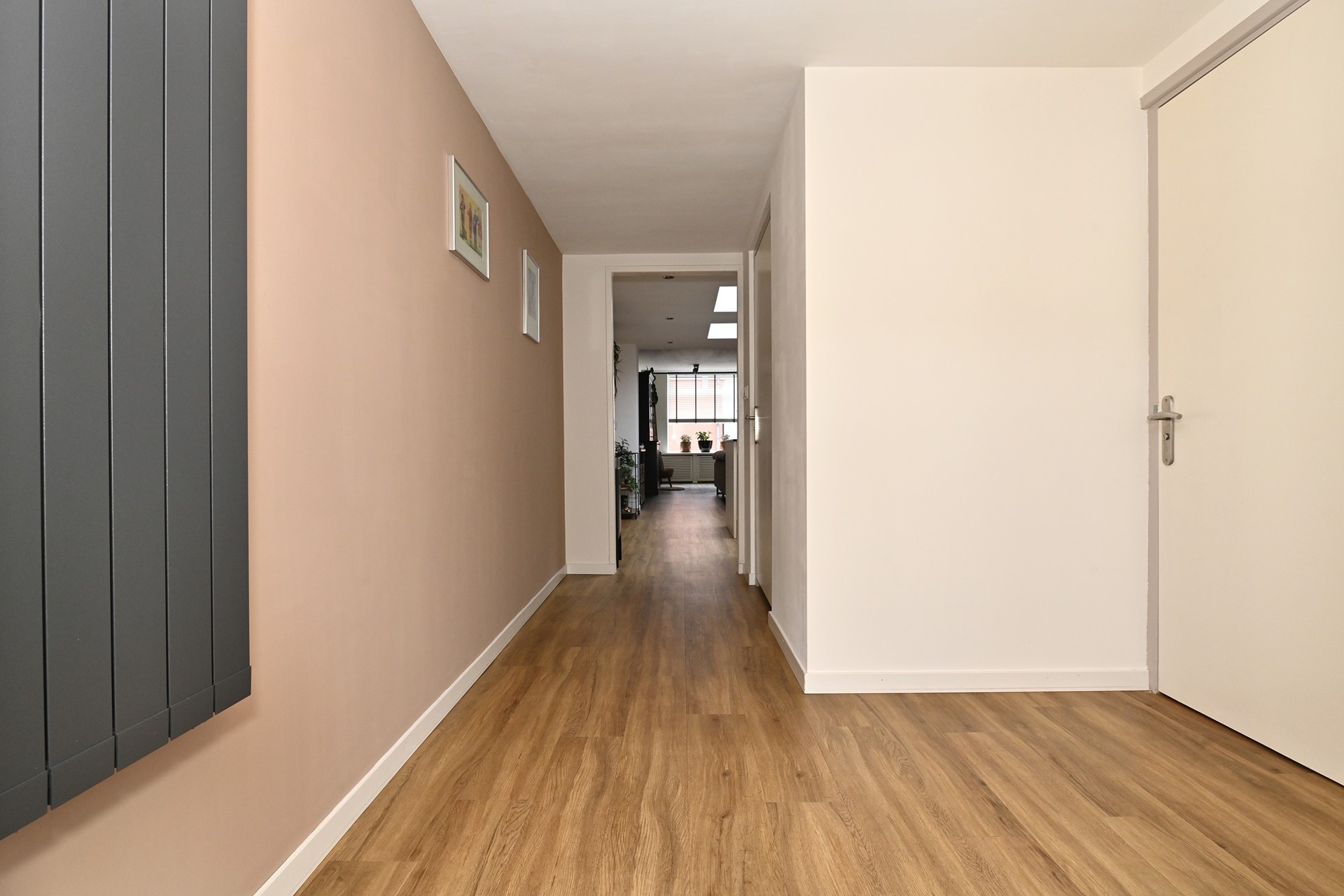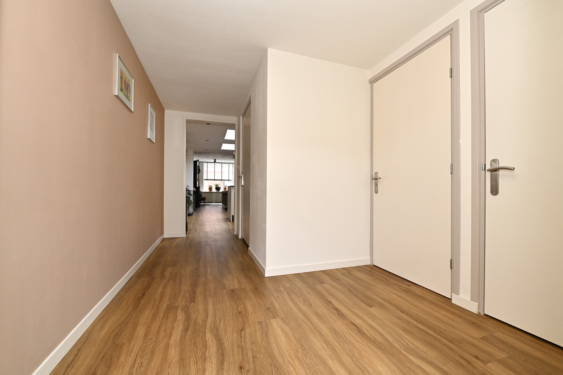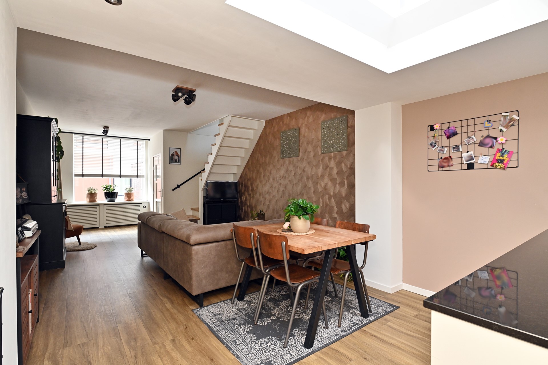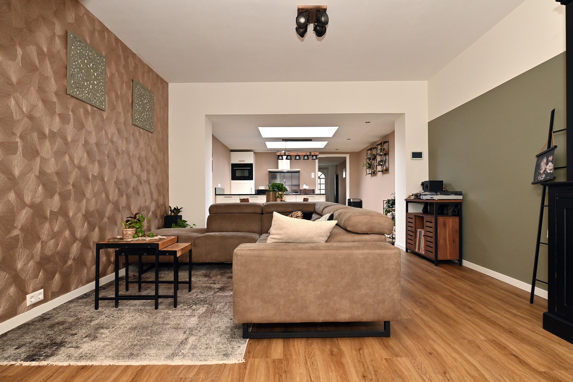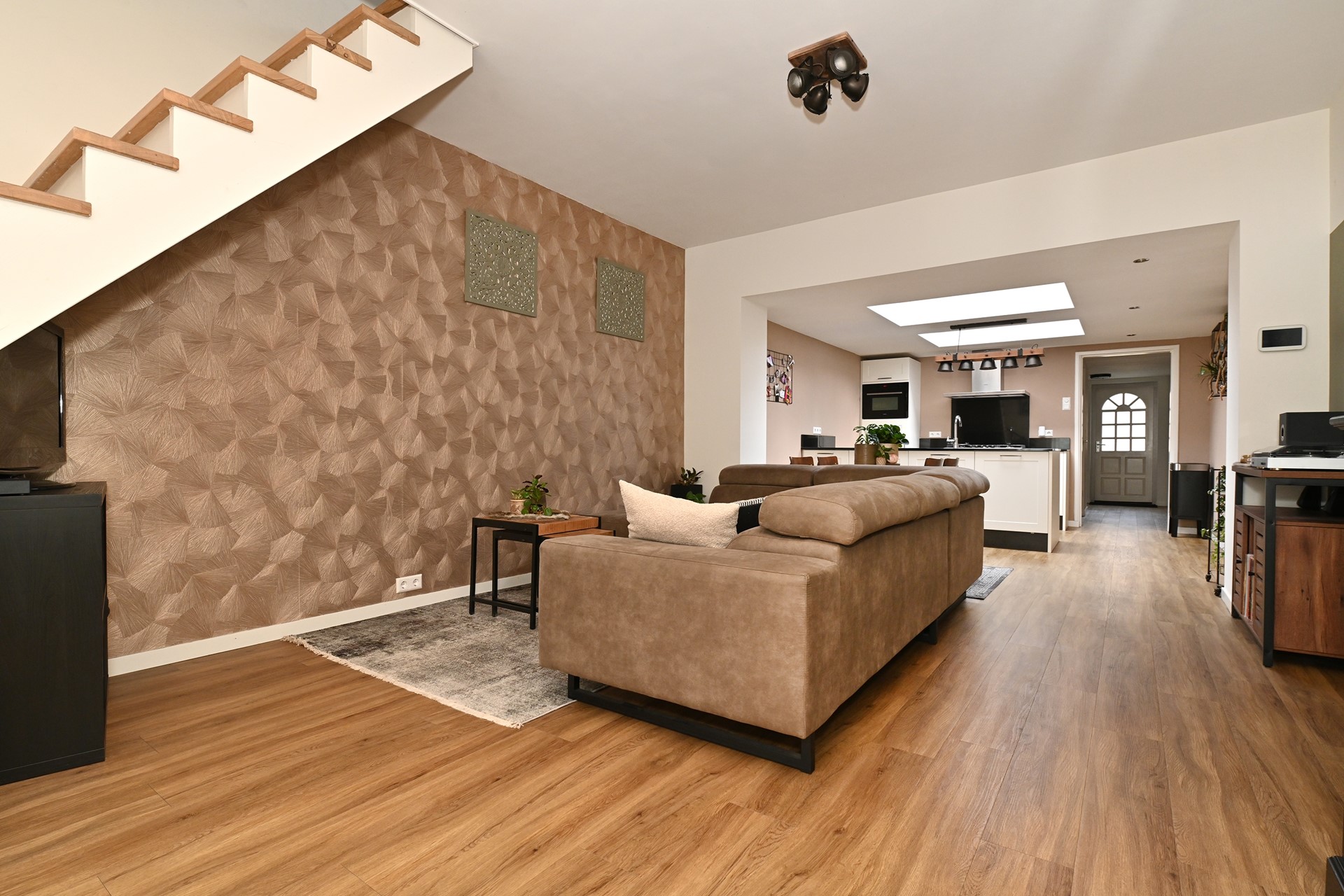 De doorzonwoonkamer is ruim en licht, voorzien van vloerverwarming, PVC vloer, strak stucwerk en een stijlvolle industriële trapopgang (geplaatst in 2018). Vanuit de woonkamer is de moderne open keuken bereikbaar.