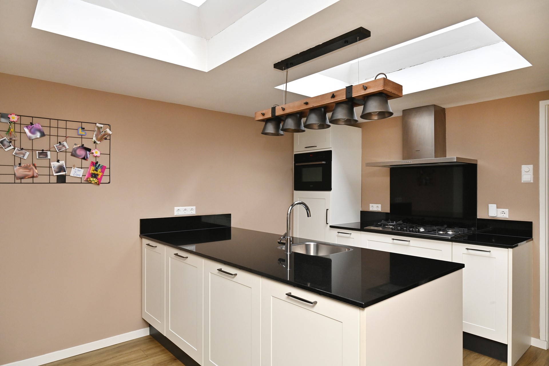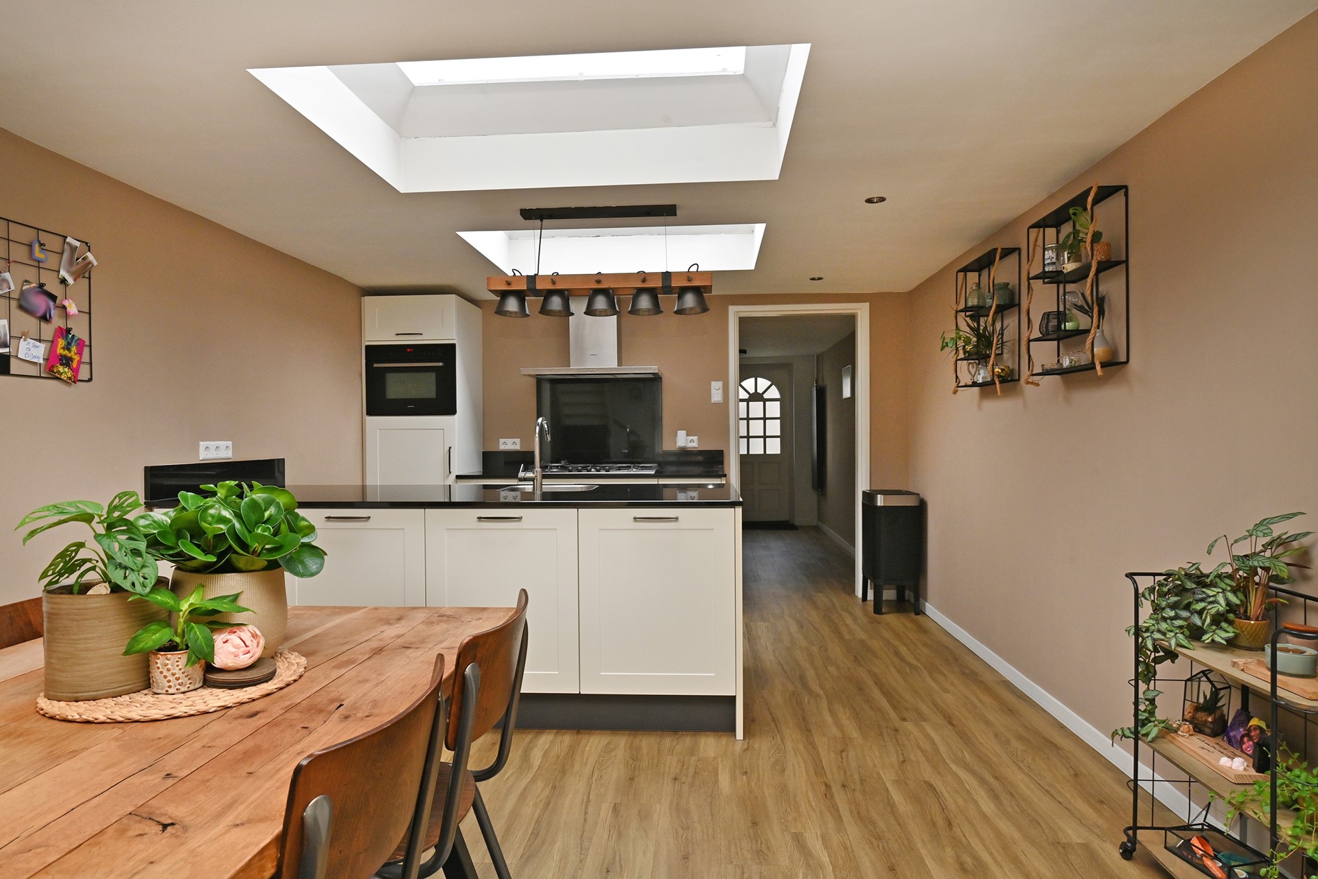De keuken is volledig vernieuwd in 2018 en uitgerust met een gasfornuis, combi-oven, inbouwkoelkast, vaatwasser en afzuigkap. Twee lichtkoepels zorgen voor extra daglicht. Vanuit de keuken is er toegang tot de hal en de achterdeur.