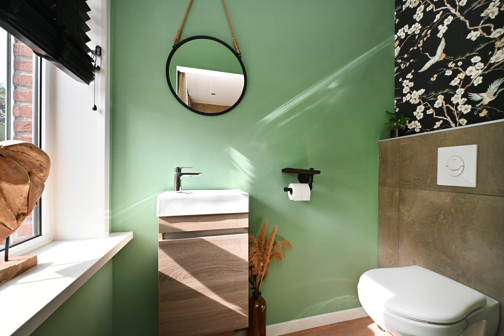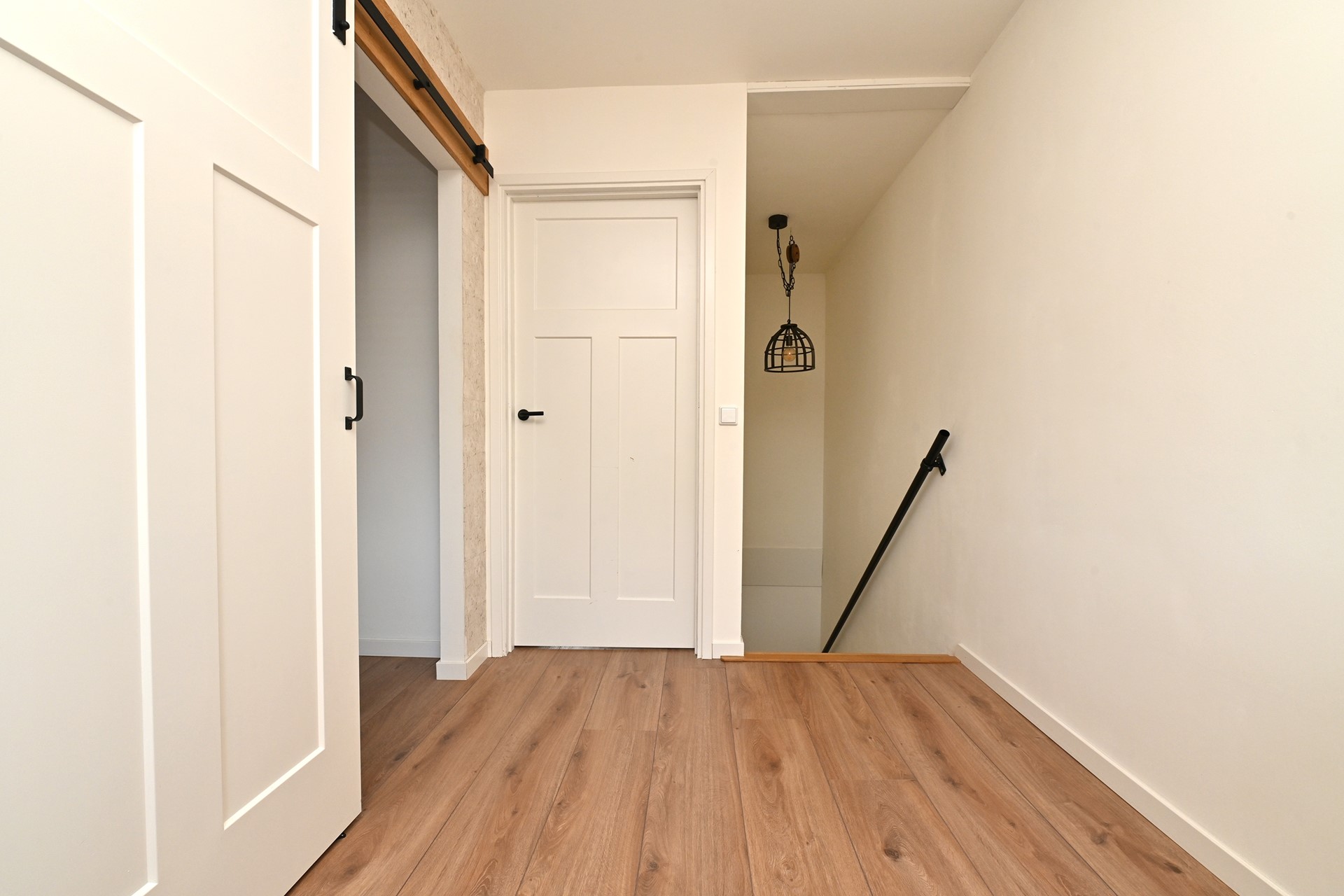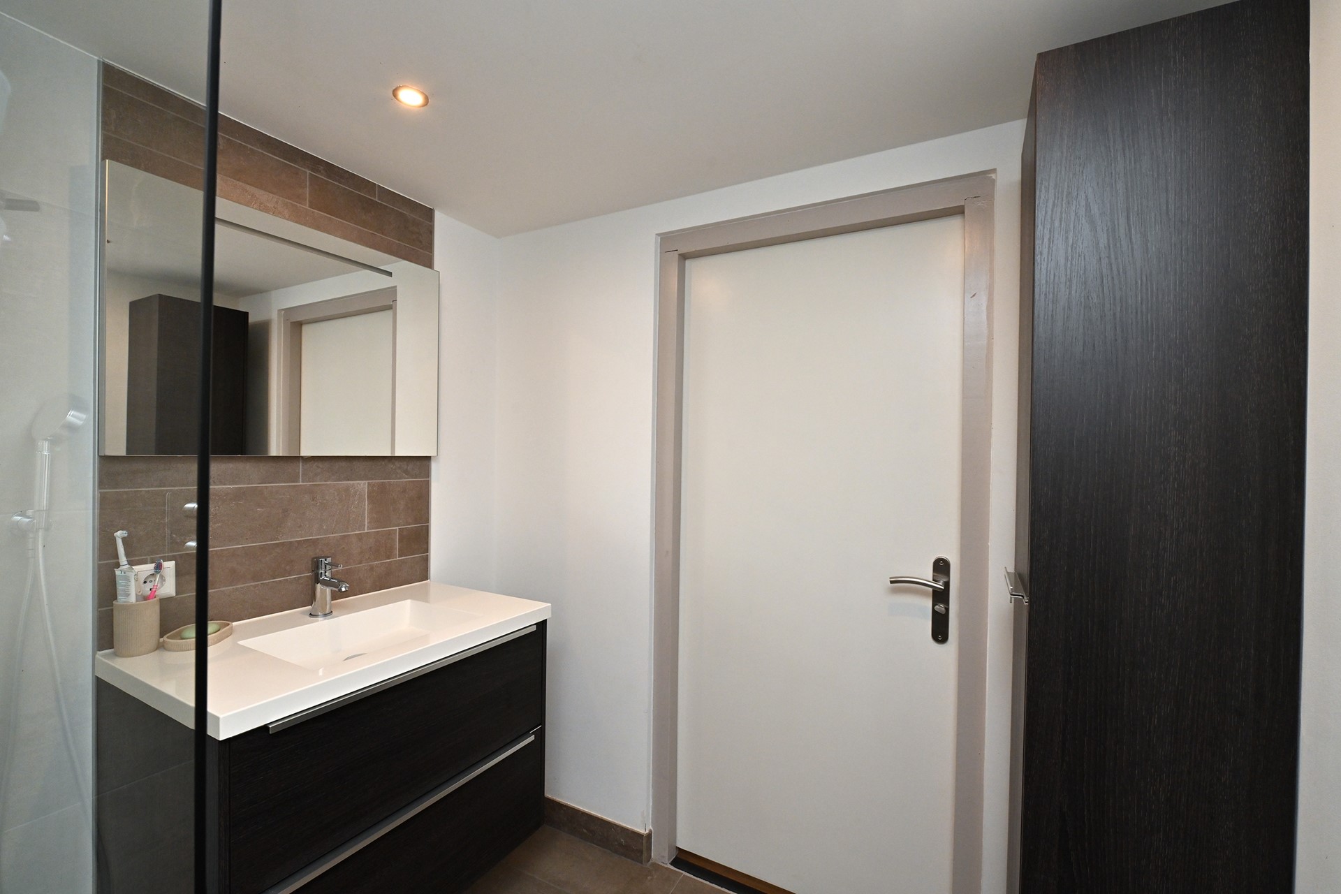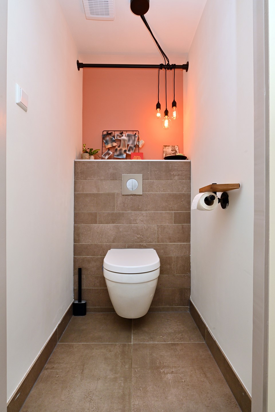De badkamer is eveneens in 2018 vernieuwd en beschikt over een ruime inloop regendouche, wastafelmeubel met spiegelverlichting, een hoge kast, tegelvloer met vloerverwarming, en een designradiator. Het toilet is separaat, modern afgewerkt en voorzien van sfeerverlichting, ventilatie en strak stucwerk.